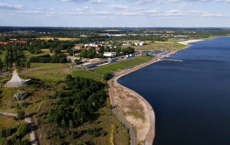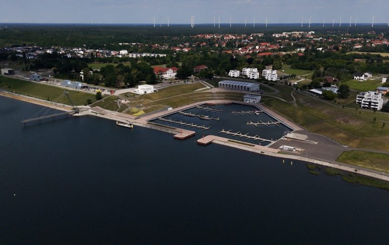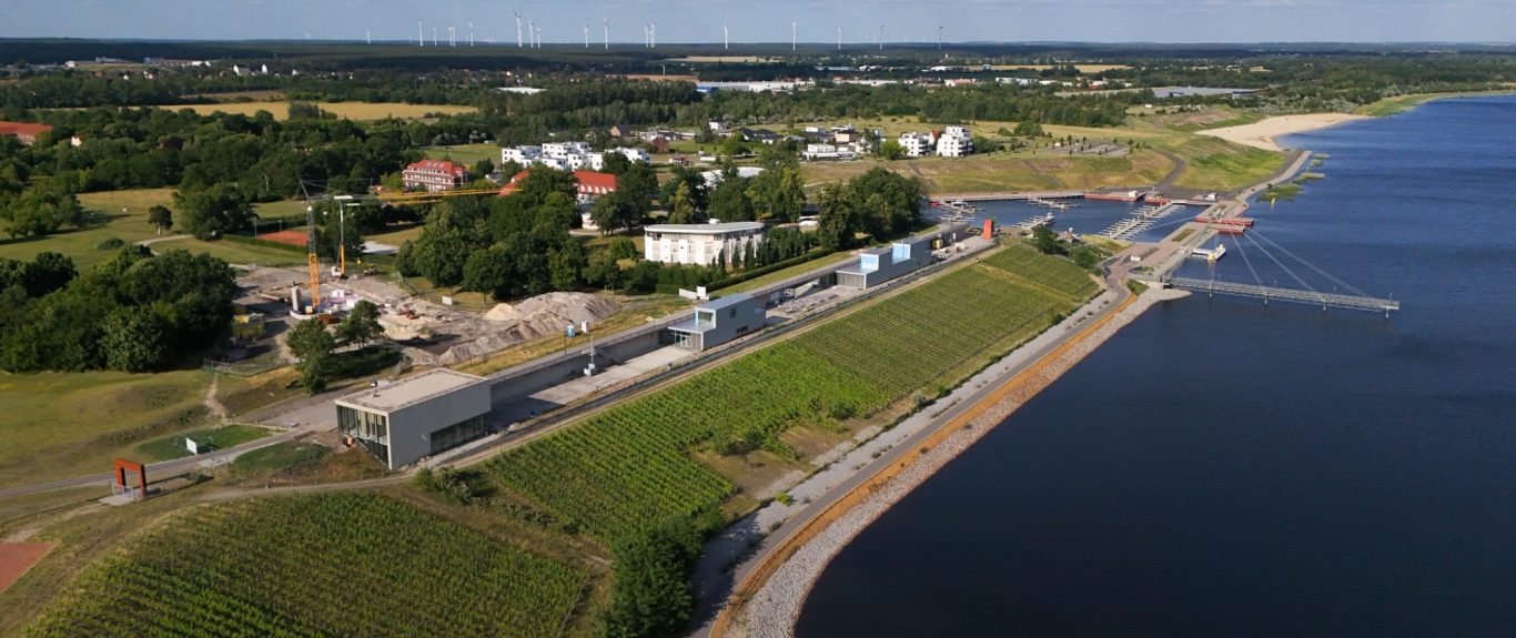 – bildete den Auftakt für die weitere Entwicklung. Später folgte die Fertigstellung des Stadthafens Großräschen, der noch auf trockenem Boden gebaut wurde.